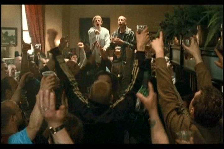 Bares (ou pubs) que surgem logo no início, quando Alexander tenta criar empatia entre o grupo e o espectador ao mostrá-los reunidos, tomando cerveja e cantando as músicas da torcida – só que a lembrança da primeira cena de “Hooligans” nos recorda que eles não são tão amáveis assim. Mas se acerta ao aproximar o grupo da plateia, Alexander erra justamente nas cenas que deveriam ser a força central da narrativa. Com sua câmera trêmula, cortes rápidos e a trilha sonora acelerada de Christopher Franke, o diretor deixa claro desde a primeira briga que não tem grande controle da misé-en-scene. Já o segundo confronto, apesar de também ser agitado, é melhor que o primeiro, com cenas mais realistas e menos picotadas. Entretanto, ao utilizar menos quadros por segundo para acelerar a imagem, Alexander torna a briga tão confusa que chega a provocar náuseas na plateia. Ao menos a briga em Manchester é bastante realista quanto às agressões e os ferimentos, apesar de ser implausível (como um pequeno grupo venceria 40 homens daquela forma?). Por outro lado, a sequência da invasão do bar no esperado confronto entre os torcedores do West Ham e do Millwall é bastante tensa e bem conduzida pelo diretor.