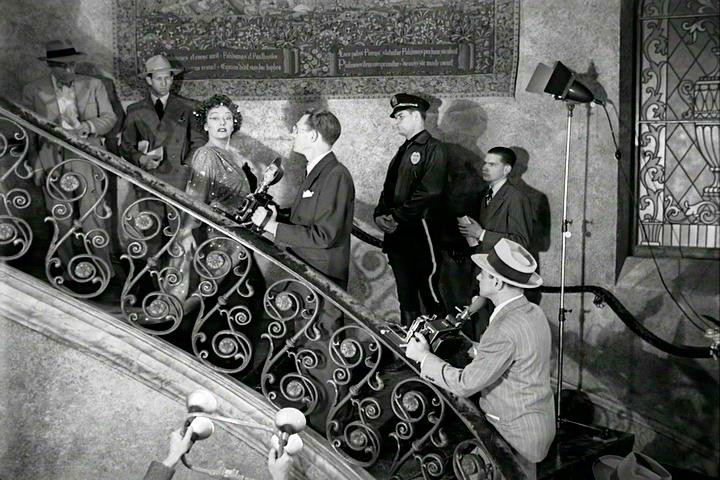 “Crepúsculo dos Deuses” revela seu final logo na primeira cena, através de uma intrigante narração póstuma – descobriremos ser a voz de Gillis somente no terceiro ato – que mantém um tom de ironia e sarcasmo (“Pobre coitado! Sempre quis ter uma piscina”), numa seqüência que nos levará até o corpo de um homem morto numa piscina. Esta tomada, aliás, é um dos raros planos estilísticos de Wilder, que procura priorizar a condução firme da narrativa e sempre valorizou mais o roteiro que o aspecto visual em seus filmes. Em todo caso, neste plano Wilder tem o cuidado de não mostrar detalhadamente o rosto do jovem morto na água. Enquanto buscamos entender as razões daquele assassinato, a excelente montagem de Doane Harrison e Arthur P. Schmidt mantém o bom ritmo da narrativa, dividindo claramente os acontecimentos em três etapas. Primeiro observamos a busca de Gillis pelos dólares que precisa para saldar as dívidas. Depois, acompanhamos seu envolvimento com Norma (e a fortuna que ela trazia). E finalmente, seremos cúmplices de sua tentativa frustrada de largar aquela vida. Portanto, Gillis é o personagem central da narrativa e servirá de fio condutor para que Wilder explore ao máximo os bastidores da indústria de Hollywood, ao mesmo tempo em que estuda a fundo os efeitos do esquecimento e do distanciamento da fama na mente de uma estrela abandonada. Priorizar o roteiro, no entanto, não significa descuidar completamente do visual. A excepcional Direção de Arte de Hans Dreier e John Meehan capricha em cada detalhe, como é notável no interior da enorme e envelhecida mansão de Norma, e a fotografia escura (Direção de John F. Steinz) utiliza na maior parte do tempo ambientes fechados e cenas noturnas, refletindo o clima sombrio em que as ações se passam.