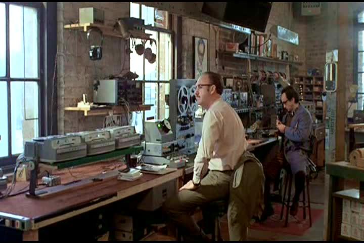 Escrito pelo próprio Coppola, “A Conversação” é um thriller intenso, repleto de reviravoltas e que prende constantemente a atenção do espectador. Segundo o espetacular livro “Como a geração sexo-drogas-e-rock n’ roll salvou Hollywood”, de Peter Biskand, o próprio Coppola admitia ter se inspirado no mestre Hitchcock quando pensou em realizar o longa, e as influências do mestre do suspense podem ser percebidas, por exemplo, através das interessantes reviravoltas na trama, como quando as fitas gravadas vão parar nas mãos do presidente através da mulher que dormiu com Harry. Empregando freqüentemente o zoom, como na espetacular cena de abertura que mostra um enorme pátio e lentamente nos leva até Harry, seguida pela seqüência da gravação da conversa em que a câmera destaca o casal, o diretor nos coloca na mesma posição daqueles que ouvem as gravações, inclusive com as interferências no som provocadas pela movimentação de ambos. Desta forma, logo no início quando vemos Harry observando aquelas duas pessoas enquanto sua equipe cuida dos microfones estrategicamente posicionados em janelas, inconscientemente passamos a ter enorme interesse naquela conversa, o que serve para prender o espectador durante boa parte do primeiro ato, enquanto Harry tenta desvendar o conteúdo da gravação em sua equipada sala de trabalho. A detalhada (e bagunçada) aparelhagem, aliás, reflete também o estado psicológico de Harry, completamente atormentado pela vida que leva, atestando o bom trabalho de direção de arte. Observe o contraste entre seu ambiente de trabalho (repleto de objetos) e seu apartamento (vazio), refletindo a enorme diferença entre sua bem sucedida vida profissional e sua solitária vida pessoal. E é exatamente quando estes mundos começam a se misturar que os problemas começam, quando o espião demonstra enorme irritação diante das perguntas de seu parceiro Stan (John Cazale) – algo que ele já havia demonstrado antes, quando sua vizinha lhe dá um presente. Coppola nos coloca propositalmente na posição do detetive enquanto este ouve repetidas vezes as gravações, ilustrando com imagens da conversa enquanto ouvimos as falas do casal, e por isso, quando ele começa a desconfiar que seu trabalho servirá para provocar um assassinato, o espectador também compartilha deste sentimento. Coppola demonstra habilidade ainda quando utiliza o close em Hackman quando Harry confessa ao padre os seus pecados, criando um momento intimista e belo, além de utilizar novamente o zoom quando ele escuta uma conversa no quarto do hotel, nos levando junto com o personagem pra dentro da situação. Situação que pode ser resumida em um único plano, quando Harry contempla um quadro com a imagem de uma ilha, num simbolismo claro para a sua própria condição de isolamento e impotência diante do que descobrira e da impossibilidade de evitar aquele assassinato.