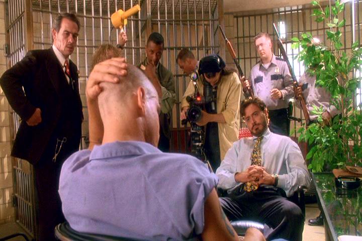 Representando esta fatia da imprensa, Robert Downey Jr. vive o jornalista sem escrúpulos que apresenta um programa sensacionalista sobre os criminosos norte-americanos, deixando claro o pensamento predominante neste setor com frases como “Coloque qualquer coisa, é fastfood para o cérebro” e se referido ao seu público como “zumbis que vêem qualquer coisa”. Com suas reações viscerais que visam chamar a atenção do espectador, Downey Jr. faz bem o típico repórter destes programas, chegando a ficar alucinado quando tem uma arma na mão durante uma rebelião, atirando pra todos os lados e matando até mesmo policiais. E entre os policiais, o maior destaque fica mesmo para Tommy Lee Jones, que vive o chefe da prisão Dwight McClusky, um homem tão louco quanto aqueles que ele mantém presos, que não tem medo de andar entre eles e suspeita quando tudo está “bem” (“Este silêncio é perigoso”). Só que Jones exagera na tentativa de ilustrar a loucura e a raiva do personagem, chegando ao auge das “caras e bocas” após a explosão da rebelião, quando mais parece um lunático do que um homem assustado.