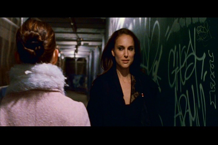 Num momento crucial, Nina se rebela contra a mãe e sai com Lilly, iniciando sua transformação – algo ilustrado de maneira sutil por Aronofsky quando a garota coloca uma roupa preta por cima da roupa branca no banheiro. Após a noitada, Nina volta para casa acompanhada por Lilly (e repare o plano escolhido pelo diretor quando elas entram no apartamento, filmado através do espelho, numa dica sutil da natureza daquele momento). Mais uma vez inspirada, Portman nos convence de que Nina realmente está alcoolizada, o que é essencial para o sucesso da cena. Em seguida, a forte cena de sexo termina com Nina mais uma vez vendo seu rosto no corpo de Lilly, em mais um sinal de sua transformação – e nesta cena vale destacar também os ótimos efeitos visuais, que fazem a tatuagem de Lilly simular as asas do cisne negro. Após a “noitada”, a transformação estaria completa, não fosse o temor que ela ainda tinha de perder o lugar para Lilly, comprovado quando ela chega atrasada ao ensaio e encontra a outra em seu lugar.