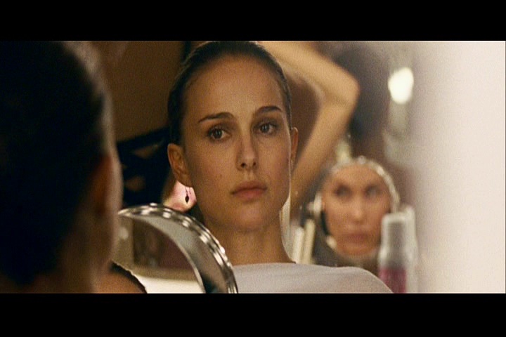 A explicação para este comportamento talvez esteja na figura superprotetora de sua mãe, que chega a ser autoritária e opressora em diversos momentos, criando um enorme bloqueio psicológico em Nina que a impede de liberar a sexualidade tão necessária no papel de cisne negro (repare como até os desenhos sinistros da mãe dela intimidam a garota). Demonstrando este lado explosivo e temperamental com precisão, por exemplo, na cena em que ameaça jogar um bolo no lixo, Barbara Hershey cria uma figura gradualmente assustadora, que caminha entre a preocupação extrema e uma suspeita crueldade ao falar das dificuldades que Nina enfrentará, num comportamento que reflete a frustração por ter abandonado a carreira de bailarina para ter sua filha. Mas como diz Thomas em certo momento, o maior obstáculo de Nina é ela mesma, algo que Aronofsky faz questão de ressaltar ao utilizar muitos espelhos, ilustrando a dupla personalidade da garota, que vê seu próprio rosto em outras pessoas, como quando sonha com Lilly e quando cruza alguém no túnel de acesso ao metrô. Aliás, na primeira vez que Nina vê Lilly no metrô, os movimentos parecidos e as roupas (branca de Nina e preta de Lilly) indicam que a ameaça representada pela espontânea Lilly será o agente motivador da mudança de Nina, pois a garota simboliza o lado ainda inexplorado de sua personalidade.
