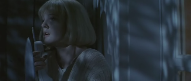 O início do longa, aliás, é simplesmente eletrizante. Um toque de telefone nos apresenta à indefesa Casey Becker (Drew Barrymore) na cozinha de sua casa espelhada, localizada numa cidade pequena do interior dos EUA, e um diálogo intrigante sobre filmes de terror se inicia. Em poucos minutos, temos uma verdadeira convenção de elementos típicos dos slashers, com planos que destacam as facas de cozinha, o silencio sendo quebrado apenas pelos diálogos e pelo toque do telefone, a trilha sonora que repentinamente sobe o tom e nos assusta, além, é claro, do senso de isolamento já estabelecido pela misè-en-scene. Quando o misterioso homem do outro lado da linha mostra que a brincadeira é séria, o espectador se assusta tanto quanto a protagonista. Entretanto, o grande segredo do sucesso da cena está na escolha do elenco. Habituados a verem a estrela principal sobreviver, os espectadores sofrem um choque tremendo quando Drew Barrymore, a atriz mais conhecida de “Pânico” na época, é assassinada brutalmente antes dos 15 minutos de projeção. Ao matar sua estrela tão precocemente, Craven desarma a plateia, nos fazendo perder as referencias e temer por todos os personagens, já que, a partir deste instante, não sabemos mais o que esperar nem quem irá sobreviver (algo que não voltaria mais a acontecer na franquia, já que Neve Campbell se consolidou como a estrela de “Pânico”).