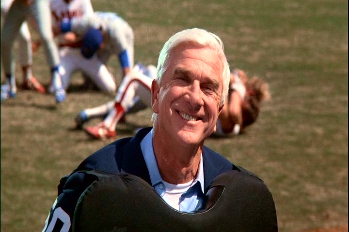 Particularmente, os momentos que mais me agradam são a piada com comida chinesa vencida na casa dele (a reação de Nielsen ao abrir a embalagem é hilária) e a sequência da partida de beisebol em que ele é o árbitro, na qual as reações exageradas de Nielsen arrancam boas gargalhadas.