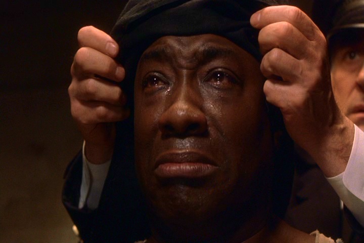 Aliás, um dos segredos do sucesso de “À Espera de um Milagre” está no excelente desenvolvimento de seus personagens, conduzido com cuidado e sem pressa alguma, mesmo que para isso o ritmo empregado pelo montador Richard Francis-Bruce (outro que trabalhou em “Um Sonho de Liberdade”) torne o filme mais extenso. Ao longo da narrativa, nos tornamos tão próximos daquelas pessoas que praticamente somos confidentes de suas frustações, anseios e pensamentos mesmo dentro de um ambiente tão cruel. Ao fazer isso, o roteiro nos coloca do outro lado do corredor da morte, nos fazendo sentir o peso das horas que aproximam cada vez mais aquelas pessoas do fim. Por isso, quando vemos a forte imagem do rosto de Bitterbuck (Graham Greene) após sua execução, por exemplo, imediatamente lembramos seu tocante diálogo com Paul momentos antes e sentimos.