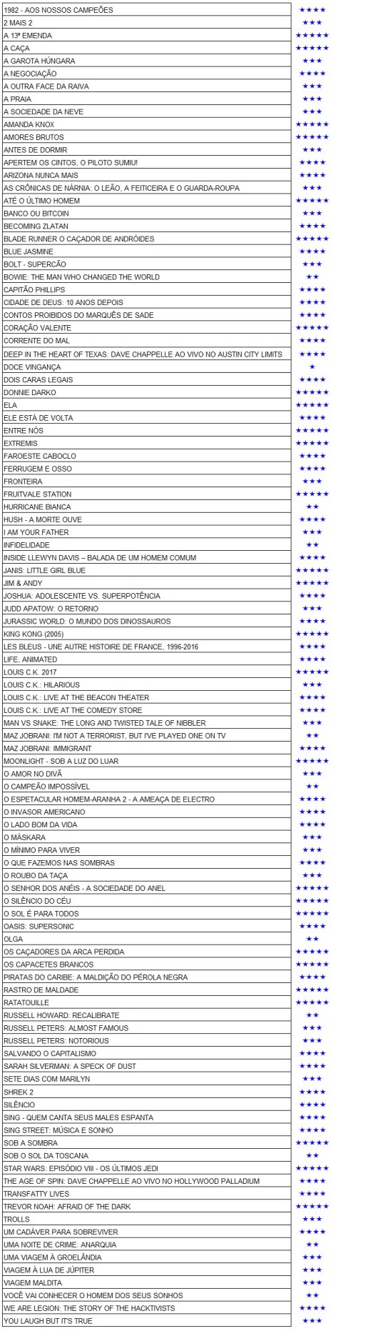E agora, a lista dos 104 filmes assistidos em 2017 com a cotação no tradicional formado das estrelinhas.