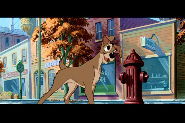 Apresentando uma notável evolução na qualidade da animação quando comparado aos filmes anteriores, “A Dama e o Vagabundo” tem início num plano belíssimo que se torna ainda mais interessante com o zoom que nos aproxima da pequena vila coberta pela neve e nos leva a casa de Lili, sob o embalo da linda música tema “Bella Notte”. Desde então, fica evidente o capricho dos animadores e a preocupação dos diretores com pequenos detalhes que fazem a diferença, conferindo maior verossimilhança a narrativa através de decisões simples como recriar os maneirismos dos cães com fidelidade (eles se coçam, se espreguiçam, lambem feridas, etc.) e ilustrar a empatia comum entre as pessoas e seus animais de estimação, como quando Lili tenta desesperadamente avisar que um rato invadiu a casa e é compreendida somente por seu dono.