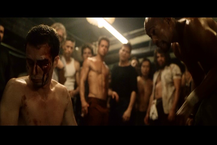 Representação simbólica e gráfica da volta ao estado primitivo, as lutas repletas de sangue e suor são captadas com precisão por Fincher, que, auxiliado pelo excelente design de som, nos permite sentir cada golpe como se estivéssemos lá dentro. Visualmente impactantes, os combates provocam excitação e asco em igual proporção, num efeito curioso que ocorre mesmo em pessoas pacifistas como este que vos escreve. Obviamente, a empolgação dos personagens em cena colabora intensamente para este efeito, já que jamais sentimos que eles sofrem ou correm risco nestas lutas, mesmo quando são literalmente massacrados pelos adversários, pois os combates normalmente se encerram com sorrisos e abraços entre homens que entendem aquilo como uma válvula de escape brutal diante da sociedade opressora em que vivem.