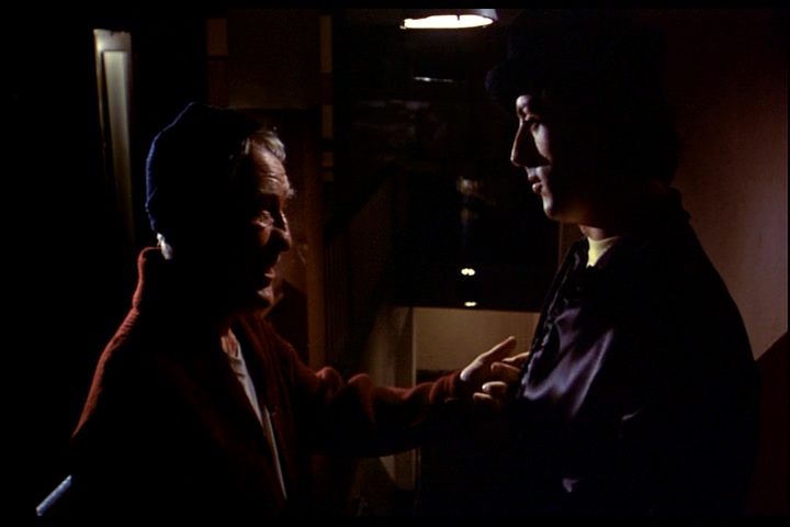 Seguindo boa parte da estrutura narrativa clássica da franquia (o início relembra o filme anterior, temos uma luta no final, etc.), “Rocky V” aposta também na volta do tom melancólico ao trazer o protagonista enfrentando problemas de saúde e financeiros, retornando a uma vida difícil e, principalmente, constatando a passagem do tempo e a decadência de lugares importantes pra ele como a abandonada academia de Mickey. Assim, enquanto a direção de fotografia de Steven Poster ajuda a criar esta atmosfera através da escolha de cores escuras e ambientes sombrios, John G. Avildsen aproveita para também inserir a mencionada nostalgia, resgatando diversos elementos do primeiro filme que estabelecem uma conexão imediata com o espectador mais saudosista, como quando Rocky coloca seu chapéu preto e os óculos em Adrian.
