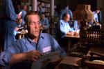 Inteligente e meticuloso, Andy planeja cada etapa com calma, também porque, como diz Red em certo momento, tudo que ele tinha na prisão era tempo. E o tempo passa lentamente naquele local. Cobrindo quase vinte anos de história sem jamais soar episódica, a montagem de Richard Francis-Bruce imprime o ritmo correto ao longa, dando a exata noção de lentidão que pede a narrativa, mas saltando alguns anos de maneira inteligente, como quando Andy faz o imposto de renda dos guardas seguidamente, além de indicar a passagem do tempo com simplicidade e eficiência, por exemplo, através do crescimento do pássaro Jake. Vale ressaltar também a perfeita decupagem de muitas seqüências, como quando Andy senta para fazer o primeiro imposto de renda para um guarda e, em seguida, vemos Brooks contando a história para os amigos. E se podemos chamá-los de amigos é porque o talentoso elenco de “Um Sonho de Liberdade” estabelece excelente química na relação dos prisioneiros, fazendo com que eles realmente pareçam se importar uns com os outros. Praticamente todo o elenco está bem, destacando-se em papéis secundários os citados Gil Bellows, que vive Tommy Williams, e o veterano James Whitmore, que interpreta Brooks, um personagem que ilustra a dificuldade de ex-prisioneiros para se adaptar fora da prisão. Lá dentro, eles têm algum respeito e uma ocupação. Lá fora, são apenas velhos ex-presidiários. Além dos presos, temos boas atuações também no grupo que tenta manter a ordem local, com o agressivo e assustador Capitão Hadley de Clancy Brown e, principalmente, o diretor Norton. Sempre falando do “Senhor”, Bob Gunton compõe um Norton bastante corrupto e ameaçador, como podemos notar, por exemplo, quando ele conversa com Andy na solitária, após ouvir a história de Tommy.