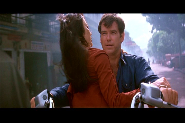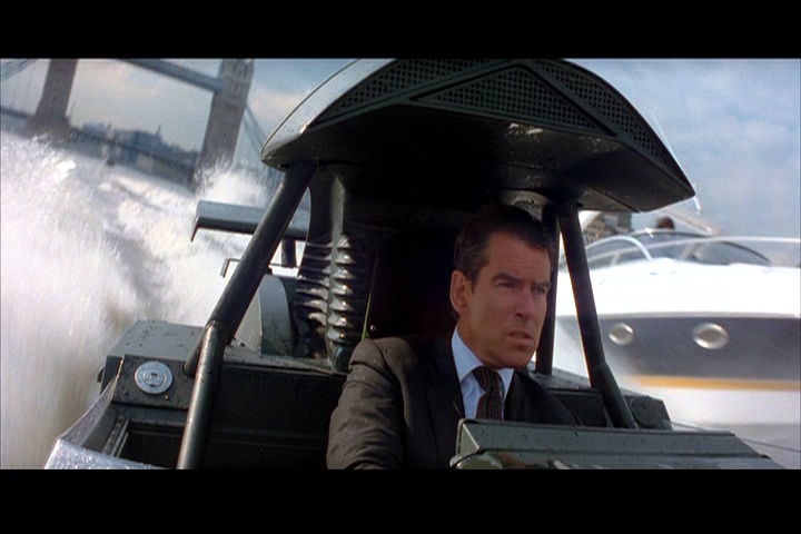 Repleta de adrenalina, a sequência de abertura de “007 O Mundo não é o bastante” dá a falsa sensação de que o longa repetirá o ritmo empolgante de seu antecessor, trazendo Bond fugindo de Bilbao com uma maleta cheia de dinheiro, a explosão de parte do centro da MI6 que resulta na morte de Sir Robert King (David Calder) e a perseguição de lancha pelo rio Tâmisa que culmina no suicídio da atiradora enviada por Renard do alto de um balão. No entanto, estes momentos não surgem com tanta frequência ao longo da narrativa e, quando surgem, nem sempre são conduzidos com destreza pelo diretor. O ataque ao galpão de Valentin Zukovsky (Robbie Coltrane) no mar Cáspio, por exemplo, é uma sequência bastante agitada, mas um pouco confusa, graças à montagem excessivamente dinâmica de Jim Clark e a fotografia às vezes sombria de mais de Adrian Biddle, que não nos permite enxergar com clareza o que está acontecendo. Da mesma forma, a sequência final dentro de um submarino jamais consegue nos empolgar e, pra piorar, ainda enfraquece o vilão Renard, que é facilmente derrotado por Bond.