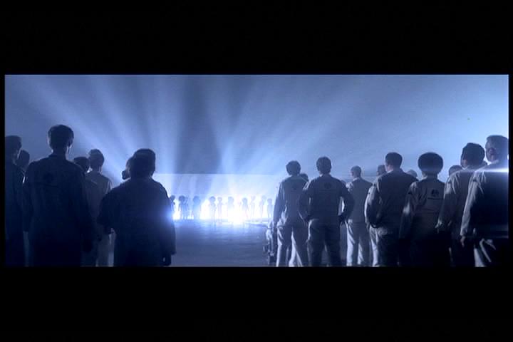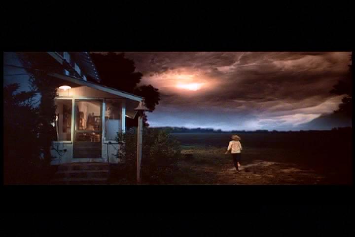 Para isto, Spielberg capricha na composição dos planos, como fica evidente desde o impressionante plano geral que mostra toda a cidade escurecendo após a queda da energia elétrica e, logicamente, no deslumbrante ato final. Além disso, o diretor usa sua câmera com habilidade para criar suspense, por exemplo, na cena em que a luz do farol de um carro atrás da caminhonete de Roy se movimenta para o lado quando este o ultrapassa e, minutos depois, outra luz também se movimenta, só que desta vez para cima, indicando para a plateia a presença de algo estranho. Repare ainda como o diretor sabe trabalhar muito bem a expectativa do espectador na cena em que acompanhamos os controladores de voo captando a presença dos OVNI’s e, especialmente, quando nos coloca dentro da casa junto com Barry e sua mãe, criando uma cena absolutamente tensa que culmina no impressionante plano em que ela sai correndo pra fora e vê as naves sumindo no horizonte distante com seu filho.