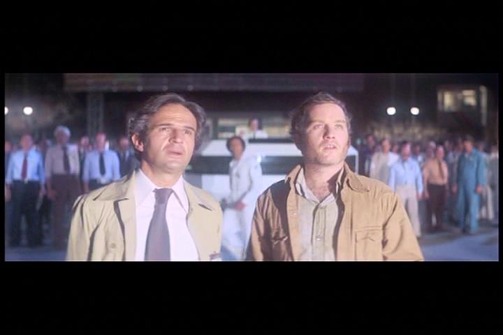 Em outro momento bem conduzido por Spielberg, acompanhamos Roy conversando com a esposa por telefone e, no segundo plano, a imagem da montanha Devil’s Tower na televisão – e o próprio movimento de câmera que revela a montanha real é belíssimo. No entanto, “Contatos Imediatos” não se resume apenas ao apuro técnico, já que o diretor é competente também ao extrair boas atuações de praticamente todo o elenco, a começar pelo próprio Richard Dreyfuss, que demonstra a determinação do personagem através de suas expressões marcantes, evidenciando também o quanto sua vida foi afetada por aquele evento incomum – algo que sua esposa e seus filhos não demoram a perceber, o que os leva a deixar a casa (com razão) após um surto de loucura do pai. E se a esposa de Roy vivida por Teri Garr não ganha grande destaque, Melinda Dillon quase rouba a cena com seu desempenho envolvente na pele da desesperada mãe de Barry, comovendo pela maneira determinada com que parte em busca do filho.