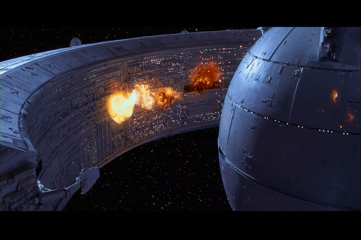Presenteando os fãs com alguns momentos marcantes como o citado “truelo” de sabres de luz entre dois Jedis e o lorde Sith Darth Maul vivido de maneira discreta por Ray Park, Lucas se destaca especialmente na batalha final, nem tanto pelo conflito ocorrido em terra firme, mas especialmente pela enérgica batalha espacial, repleta de movimentos de câmera interessantes que nos jogam pra dentro do confronto – e repare como nem mesmo no momento mais tenso da narrativa Jar Jar Binks dá sossego ao espectador, com suas gags nada inspiradas que só servem para desconcentrar a plateia. Novamente, Lucas encerra a narrativa com uma festa, evidenciando que a estrutura da nova trilogia traria similaridades com a anterior (já que o episódio IV também terminava com uma festa) e realçando sua preocupação em jogar o espectador pra fora da sala de projeção com a sensação de alegria, ainda que neste caso ela possa soar falsa e não resistir ao tempo – e felizmente este desfecho artificialmente alegre não se repetiria, cedendo espaço para um tom mais sombrio que lentamente dominaria a nova trilogia.