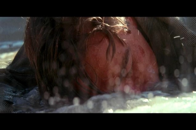 Mas nem só de beleza vive “A Praia” e descobrimos isso de maneira traumática através das fortes imagens que surgem repentinamente após um dos integrantes da comunidade ser atacado por um tubarão. O banho de sangue, exposto propositalmente por Boyle, demonstra que a natureza pode ser bela, mas igualmente cruel. Mais cruel ainda, no entanto, é a postura do restante do grupo que trata o companheiro ferido com desprezo, numa postura até mesmo pouco realista diante da gravidade da situação, que estereotipa pessoas que querem viver apenas da natureza como selvagens sem sentimento, o que é bem questionável. Por outro lado, quando eles decidem largar o ferido no meio das árvores para não sofrerem mais com seus gemidos, de certa forma estão agindo como boa parte da sociedade que prefere não ver os problemas do local onde vive, apoiando, por exemplo, a remoção de pessoas carentes, mendigos e moradores de rua de forma brutal pelo Estado (num processo cruelmente chamado de “higienização”), para que possa transitar livremente e pensar que tais problemas sociais não existem.