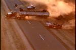 Numa das poucas vezes em que abre a boca pra falar algo, Max demonstra sua coragem (“Se quiserem sair daqui, falem comigo”), facilmente compreendida se pensarmos que este homem não tem mais o que perder na vida. Na realidade, temos a constante sensação de que Max desafia a morte, como quando vai buscar o caminhão sabendo que na volta enfrentará sozinho os perigosos motoqueiros. Esta, aliás, é uma das melhores seqüências do longa, extremamente bem conduzida por George Miller, que confere um ritmo frenético à cena, graças também aos cortes rápidos que revelam o bom trabalho de montagem do trio Michael Balson, David Stiven e Tim Wellburn. Acompanhada pela agitada trilha sonora, a perseguição alterna entre planos aéreos, que dão uma visão panorâmica da perseguição, e planos fechados do rosto de Max, que transmitem sua tensão na angustiante corrida para chegar à refinaria, o que permite ao espectador compreender perfeitamente o que se passa na tela. Já a espetacular seqüência da perseguição final inicia com um impressionante travelling aéreo e, a partir daí, exibe um festival de imagens em alta velocidade, alternando planos diversos de dentro e de fora do caminhão com o uso da câmera lenta, permitindo ao espectador apreciar cada detalhe da frenética perseguição, como atropelamentos e manobras (entre elas, um sensacional giro em 180 graus do caminhão em alta velocidade). Tudo isto, pontuado por uma trilha empolgante e coroado com um final surpreendente, que revela a inteligente estratégia adotada pelos integrantes da refinaria para conseguir fugir com o precioso bem.