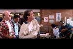 Apostando na mesma fórmula de “Máquina Mortífera” e “Máquina Mortífera 2”, Richard Donner consegue mais uma vez balancear com incrível competência as empolgantes seqüências de ação com momentos dignos dos bons filmes de comédia, algo notável desde a primeira cena deste “Máquina Mortífera 3”, quando o conflito entre a impulsividade de Riggs e o conservadorismo de Murtaugh nos leva pra dentro de um prédio cercado pela polícia devido a suspeita de uma bomba e nos entrega uma das mais emblemáticas cenas da série. Observe a excepcional condução de Donner, intercalando as tiradas de Riggs (“Cher não tem tanto plástico!”), a discussão sobre qual fio é o correto e, inteligentemente, incluindo um plano de um gato andando sobre o carro, que será a chave para o hilário final da seqüência (“Pegue o gato!”). O diretor é competente também na condução das ótimas cenas de ação, como a perseguição com furgões em alta velocidade, também repleta de pitadas de bom humor, graças à simpática Delores, interpretada com carisma por Delores Hall, ou a empolgante perseguição que se inicia no metro, sai pelas ruas com Riggs numa moto (e na contramão!) e termina com ele pendurado numa ponte. Nesta cena, observe a alternância dinâmica entre os planos aéreos, os closes e planos subjetivos, que nos colocam sob o ponto de vista de Riggs, graças também a montagem ágil de Robert Brown e Battle Davis, além da qualidade do som, que capta com precisão o barulho da moto, dos carros, das buzinas e as vozes dos personagens. Donner também é hábil nos movimentos de câmera que nos jogam pra dentro da trama, como a câmera que acompanha Riggs e Roger no tiroteio que resulta na morte de Darryl (Bobby Wynn), além de utilizar estes mesmos movimentos para nos transmitir sensações, como no zoom out que diminui Roger na tela após este tiroteio, ilustrando a aflição do policial após matar o garoto. E finalmente, Richard Donner mostra talento na condução das cenas engraçadas, como quando Riggs interrompe as filmagens de um filme e atrapalha Rianne (Traci Wolfe), tratando de recuperar imediatamente o emprego da moça à sua maneira, ou quando Leo (Joe Pesci) leva um tiro na quadra de hóquei e é levado ao hospital.