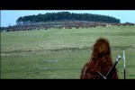 Mas apesar desta grande cena, sua competência na direção se confirma mesmo na sensacional batalha de Stirling, um espetáculo cinematográfico de primeira grandeza, que não deve em nada às grandes cenas da história dos épicos. Temos certeza de estar acompanhando um momento marcante desde o inicio, com a triunfal chegada do exército inglês, capaz de fazer o chão tremer (novamente, ponto para o design de som), passando pelos efeitos digitais que multiplicam os figurantes e nos apresentam numerosos exércitos e pelo emocionante discurso de William antes do inicio da batalha – neste discurso, aliás, nasce à imagem icônica do personagem com a cara pintada de azul, num erro histórico de menor importância que é um ótimo exemplo de licença criativa que agrega à narrativa. O show do diretor continua durante o confronto, imprimindo uma energia incrível em toda seqüência, com sua câmera inquieta e cortes rápidos que jamais soam confusos e nos jogam pra dentro do campo de batalha de maneira brutal, nos fazendo praticamente sentir o calor do combate e o sangue que é derramado. Obviamente, este realismo extremo torna a batalha muito mais convincente. Além disto, temos o genial momento em que os escoceses param pela primeira vez na história a cavalaria inglesa, num fato real que fica ainda mais empolgante na câmera de Gibson.