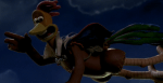 Após focar no relacionamento entre ambos, a narrativa nos leva ao inevitável conflito quando Rocky revela sua mentira. Observe então como, após descobrir que ele não voa, as galinhas surgem tristes, banhadas pela chuva e enquadradas num plano contra-plongè que as diminui em cena, o que, somado a trilha melancólica, transmite perfeitamente a decepção de todos naquele instante. Assim, o clímax começa a ser construído quando as galinhas percebem que não precisam dele para arquitetar a fuga e salvar as próprias vidas, ao contrário do que ocorrera instantes antes quando Ginger é levada para a nova máquina de fazer tortas e consegue escapar com a ajuda de Rocky.