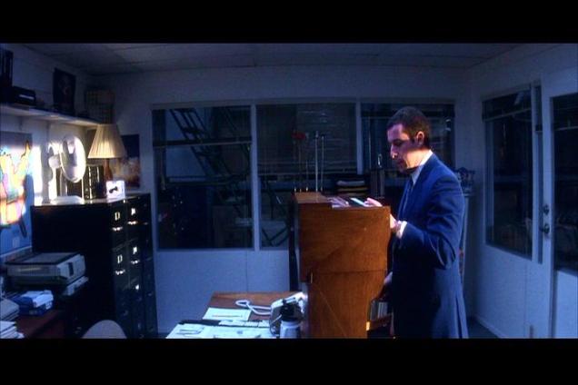Da mesma forma, a previsão do tempo surge várias vezes na tela, indicando a importância do clima desde o início e sinalizando de forma sutil o evento que ocorreria no clímax. Observe também como a primeira previsão é de 82% de chance de chuva, numa brincadeira que faz uma das primeiras alusões ao versículo “Êxodo 8:2”, algo que se repetiria algumas vezes, como na abertura do programa comandado por Jimmy em que vemos rapidamente um cartaz escrito este versículo na plateia. Em outro momento, a menção ao livro de Êxodo, capítulo 20, versículo 5 (“Os pecados dos pais recaem sobre os filhos”), além de reforçar o tema central de “Magnólia”, ainda indica a importância deste livro para compreender a narrativa. E por fim, repare como Jim passa por uma placa de publicidade luminosa contendo a frase “Êxodo 8:2” segundos antes do primeiro sapo atingir seu carro.