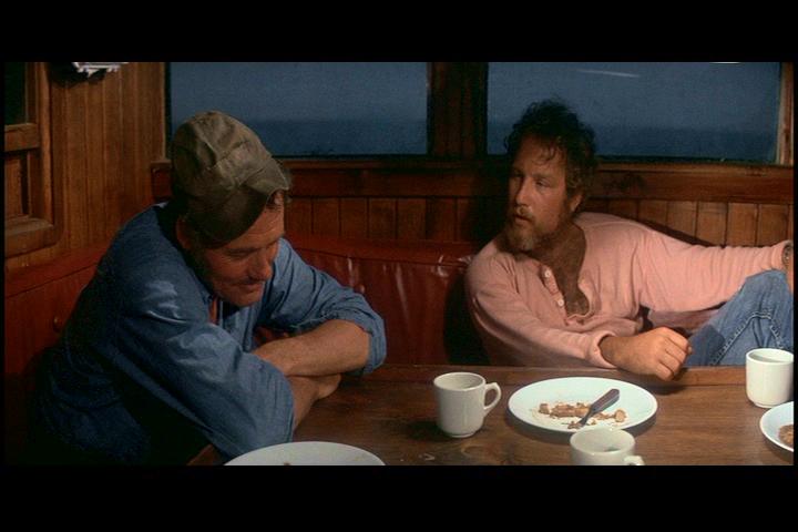 Um dos motivos para a empatia do espectador com o sofrimento dos personagens é que toda a trama é mostrada focando a vida de um personagem em especial, o chefe Brody. Ao fazer isto, Spielberg cria no espectador uma proximidade com o drama daquela família, que vive dividida entre voltar para a cidade grande ou tentar se adaptar a nova vida em Amity, como podemos perceber na primeira conversa do casal. E esta empatia não seria possível se a atuação de Roy Scheider não fosse tão eficiente. Scheider é extremamente competente no estabelecimento da conexão entre o espectador e o seu drama, que é defender sua família. Observe como ele demonstra todo o esforço de Martin na luta para impedir a liberação da praia na discussão que tem com o prefeito no barco. Quando a mãe de Alex lhe dá um tapa na cara, ele evita o olhar dela sutilmente (observe como o foco do seu olhar vai para baixo e volta seguidas vezes) e abaixa a cabeça quando ela vai embora, tamanho era o seu embaraço por entender a dor daquela mãe. Sua cena mais tocante acontece quando seu filho Sean Brody (Jay Mello) imita todos os seus gestos. Ele pede um beijo para o filho, que pergunta por que, e ele responde “Por que eu preciso”. A emoção de Ellen na cena também é muito bem representada por Lorraine Gary, com os olhos marejados e a feição de choro. Em outro momento, ao ver Ellen sair chorando pelo porto, na cena em que Martin parte para a caçada, o espectador sente o drama da esposa aflita com a possibilidade de perder o marido, o que é mérito também da boa atuação de Gary. Na belíssima cena do jantar em sua casa com Hooper, Ellen pergunta se Martin poderia abrir um tubarão que havia sido capturado e ele responde “Eu posso fazer tudo, sou o chefe da polícia” com uma cara cínica e um olhar superior típico de quem bebeu além da conta, demonstrando sua habilidade também nos momentos cômicos. Pra finalizar, Scheider improvisou uma das frases mais conhecidas do cinema. Ao ver o tubarão por inteiro pela primeira vez (assim como o espectador, que só tinha visto parte dele no ataque ao velejador), lentamente ele caminha para trás, entra na cabine do barco e diz: “Vamos precisar de um barco maior”. Richard Dreyfus também tem uma boa atuação como o oceanógrafo Matt Hooper. Observe a cena em que ele está fazendo o relatório da primeira vítima do tubarão. Ao puxar o pano, ele respira ofegante, como quem está assustado e também incomodado pelo cheiro, e demonstra através da fala ritmada e da respiração forte que está muito impressionado com o estrago que o tubarão fez na moça, pedindo um copo de água em seguida. O prefeito Larry, vivido com competência por Murray Hamilton, tem dois momentos de destaque. O primeiro é quando ele diz no porto que ali não é o lugar adequado para fazer uma autopsia no tubarão, com a sobrancelha levantada como quem está pedindo bom senso. O segundo é a cena em que ele assina, tremulo, fumando um cigarro e olhado pra baixo, a autorização para contratar Quint. Hamilton retrata muito bem o remorso do prefeito, dizendo que só pensou nos interesses da cidade, se esquecendo que seus filhos também estavam na praia. A ambigüidade do personagem fica evidente. Ele não é ruim ou bom, só é um ser humano que comete erros e acertos. Mas o grande destaque da produção fica para a grande interpretação de Robert Shaw, como o experiente caçador Quint. Desde sua brilhante introdução, na cena em que ele interrompe a discussão sobre o tubarão raspando a unha na lousa, podemos perceber sua enorme autoconfiança, ilustrada através do olhar fixo e da fala segura. Seu primeiro diálogo com Hooper já deixa claro o choque de estilos (modernidade versus experiência) que inevitavelmente acontecerá entre os dois. Em uma das melhores cenas do filme, Shaw demonstra toda sua capacidade, auxiliado também pelo ótimo trabalho de Dreyfus e Scheider. Eles começam a contar as histórias de suas cicatrizes e fazer piada até que, em certo momento, Dreyfus corta a risada ao saber a tatuagem que Shaw apagou, e passa a falar ofegante, sabendo a importância que teve aquele ato. Shaw olha fixo pra mesa, com os braços cruzados, como quem puxa na memória uma história inesquecível e marcante. Observe a alteração no tom de voz, o olhar penetrante, o ritmo lento e o tom melancólico dele enquanto conta sua aterrorizante experiência no mar quando entregou a bomba de Hiroshima. Sua descrição perfeita e detalhista sobre os ataques de tubarão cria no espectador o pavor e o pânico, e o prepara para o clímax do filme.