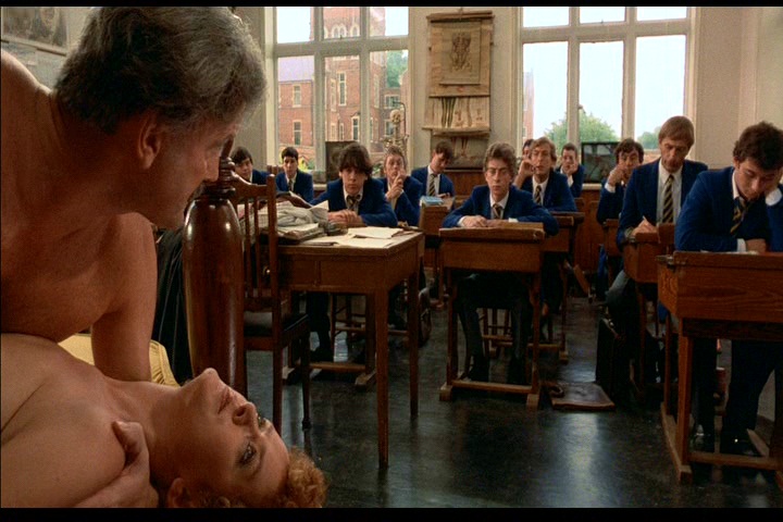 Em “O Sentido da Vida”, os diretores se mostram inclusive mais inventivos visualmente, como no plano em que o casal de protestantes fala dos católicos (num diálogo hilário, aliás) enquanto dezenas de crianças saem em fila indiana da casa ao fundo ou na engraçada aula de educação sexual, em que a composição do plano nos permite ver a reação dos alunos enquanto o professor ensina na prática como ter uma relação sexual. Finalmente, temos até mesmo um interessante plano-sequência que nos permite acompanhar o garçom Gaston enquanto este fala sobre as coisas importantes em sua vida, num instante, aliás, em que outra convenção narrativa é deixada de lado, já que o personagem fala diretamente com a câmera e quebra a quarta parede.