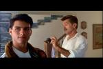 Como podemos perceber, “Top Gun” parece ter apenas um propósito: alçar o então candidato a astro de Hollywood Tom Cruise ao estrelato e, conseqüentemente, arrecadar milhões nas bilheterias. E o roteiro nada criativo, escrito por Jim Cash e Jack Epps Jr., explora diversos clichês sem nenhum pudor para alcançar seu objetivo. Temos o jovem galã e promissor que, devido ao trauma do passado relacionado à morte do pai, não tem medo e nem juízo, mas que por outro lado, é incrivelmente bom no que faz. Temos também a garota (no caso uma mulher mais madura) que obviamente se envolverá com o mocinho e o antagonista chato, que parece existir somente para gerar conflito com o protagonista sem aparente justificativa, e que obviamente, ficará amigo dele no previsível final. Finalmente, temos as músicas joviais e românticas da bela trilha sonora de Harold Faltermeyer, que ficam grudadas na memória do espectador, fazendo-o lembrar do filme sempre que as escuta (e na época a romântica “Take my breath away”, do grupo Berlin, foi tocada exaustivamente nas rádios). Somente para reforçar o argumento, repare as inúmeras vezes em que Scott utiliza o close em Tom Cruise, freqüentemente de óculos escuros, alternando com planos americanos (da cintura pra cima) do astro sem camisa, claramente explorando o carisma (e os músculos) do jovem ator para atrair o público feminino, como fica evidente na cena do jogo de vôlei, que nada mais é do que puro exibicionismo dos jovens galãs. Até mesmo a tensa e triste morte de Goose não escapa ao clichê da morte do melhor amigo que serve como ponto de virada na vida do protagonista, simbolizada perfeitamente na cena em que Maverick joga as cinzas do parceiro no mar. E nem mesmo o treinamento dos pilotos soa convincente, jamais transmitindo a esperada dificuldade que um piloto deveria enfrentar para alcançar o nível de excelência exigido numa profissão como esta.